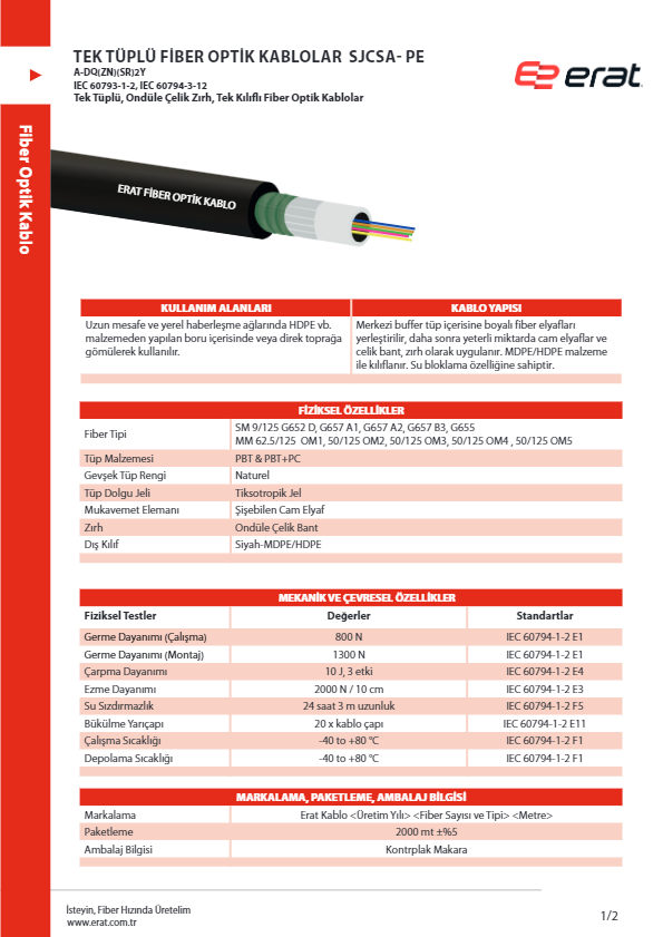 | Kablo Türü | Fiber Optik Kablolar | |