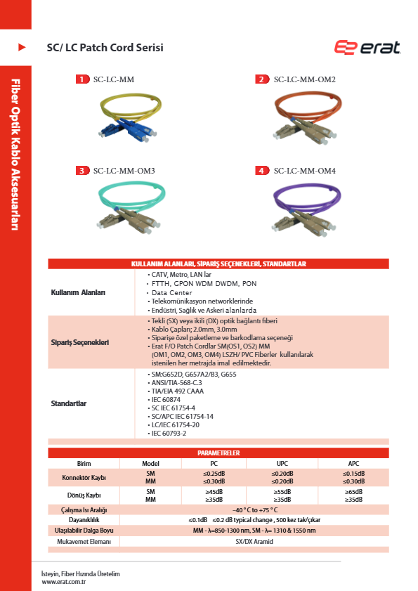 | Kablo Türü | Fiber Patch Cordlar | |